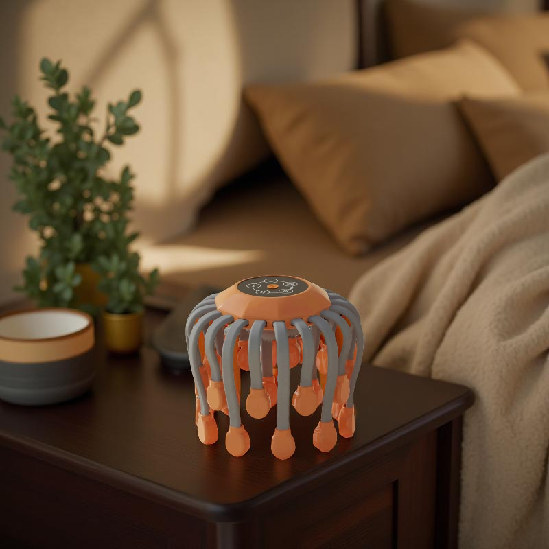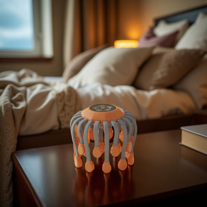 Un alivio instantáneo después de un día largo. El masajeador se adapta perfectamente a mi cabeza y las vibraciones son súper relajantes. ¡No puedo dormir sin él!